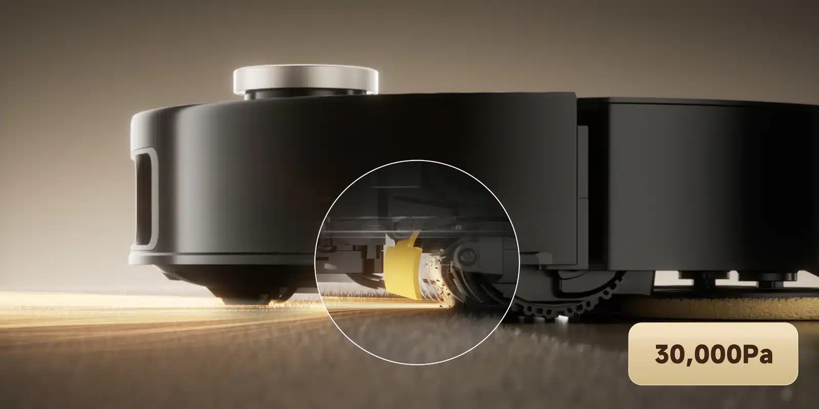 Kada MOBIUS 60 detektira tepih, pregrada za zadržavanje pritiska automatski se spušta kako bi se formirao poluzatvoreni prostor. Zahvaljujući snažnom motoru, to povećava usisnu snagu unutra, što olakšava podizanje duboko ukorijenjene prašine i kose.